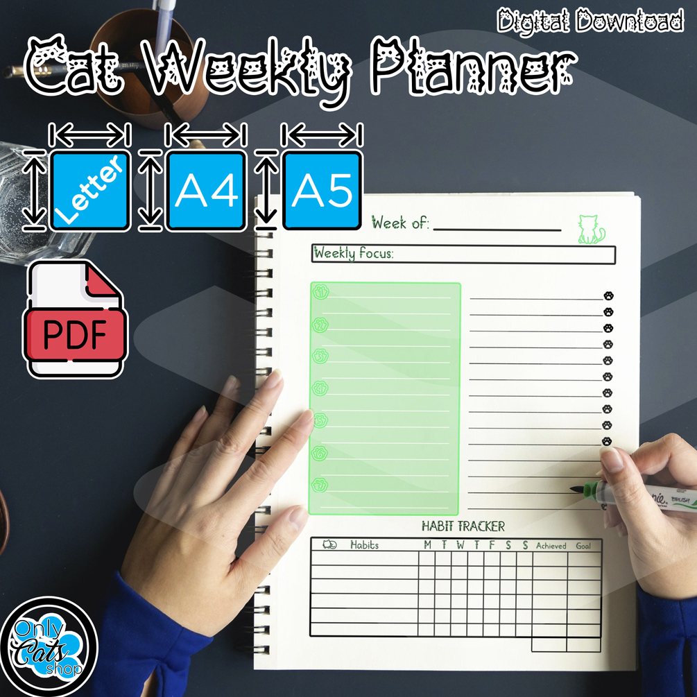 Track your daily activities with this very preety printable cat daily / weekly simple planner design.